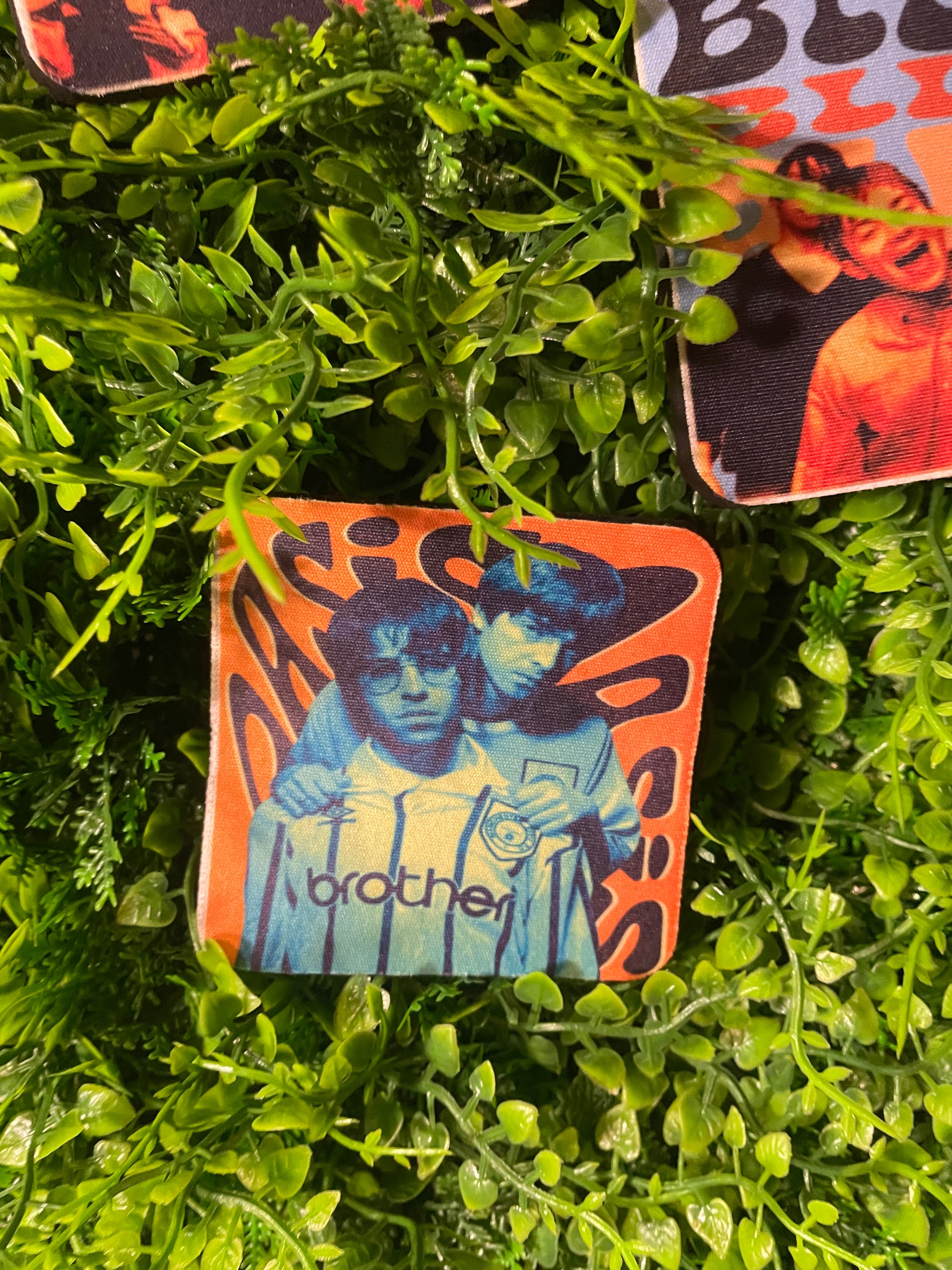 Handmade britpop coaster set printed on rubber back grip coasters.